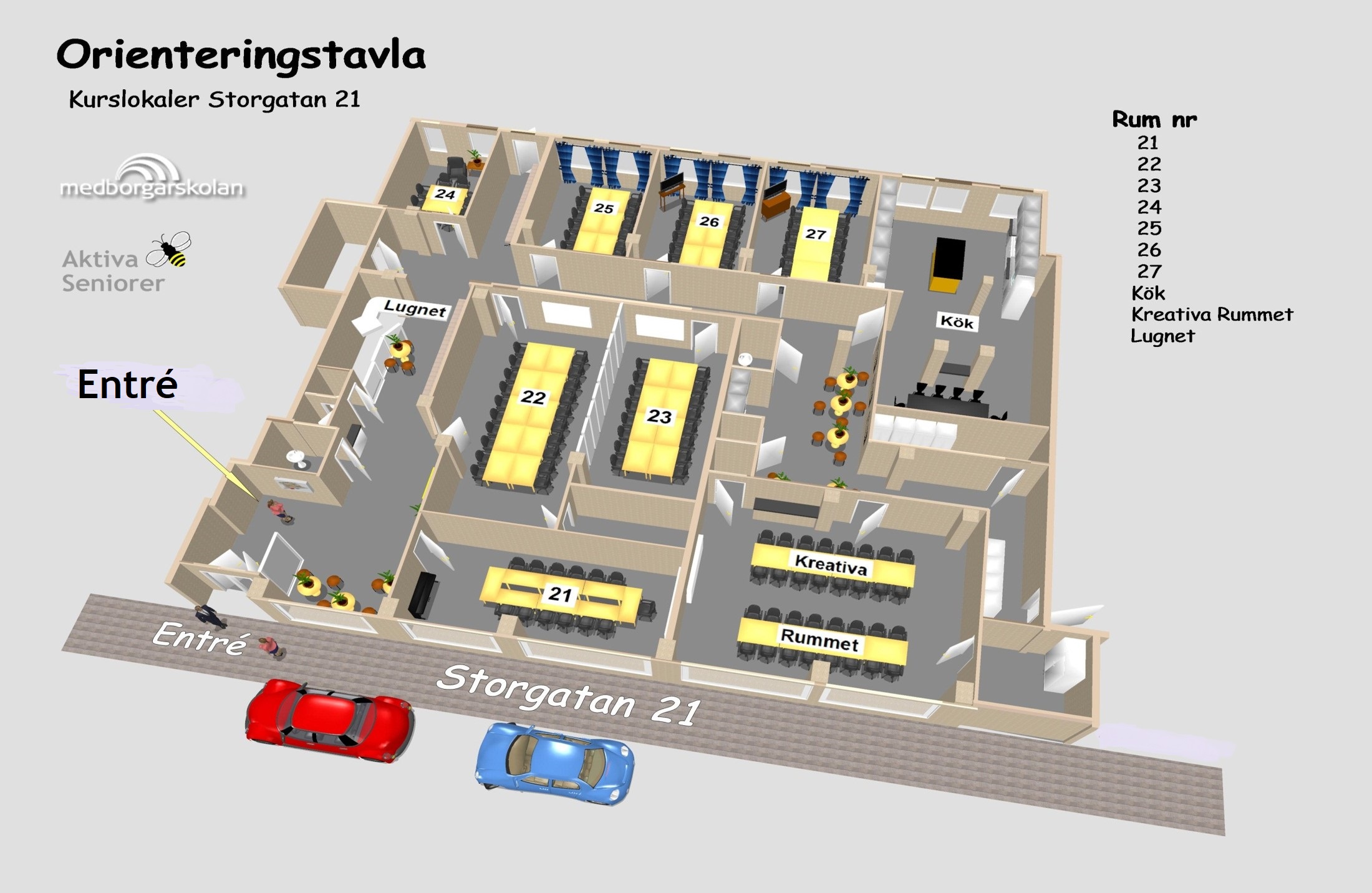 | Tid | Startdatum | Aktivitetscirkel | Cirkelledare | Ledigt | Lokal | ||